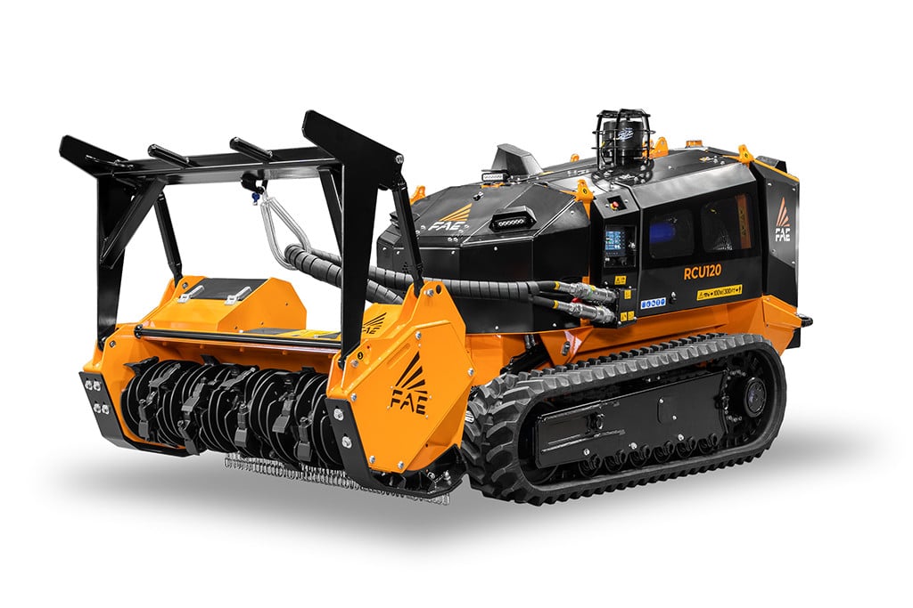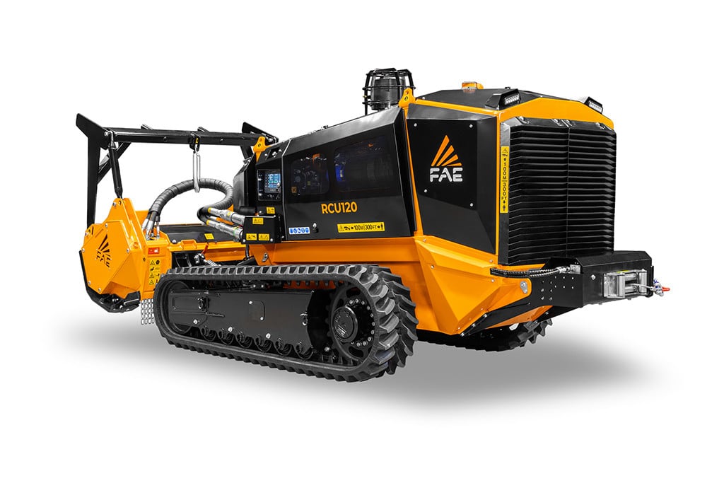 Le RCU120 est un automoteur sur chenilles FAE compact et puissant, capable de broyer les branches et le bois, de l’herbe et de petits arbustes, ainsi que les souches, grâce aux différents équipements disponibles. Il peut compter sur un moteur Rehlko (Kohler) de 120 ch. Le RCU120 est capable de travailler sur des pentes raides, jusqu’à 55°. Le chenillard renforcé est doté d’une voie variable hydraulique avec des demi-trains indépendants pour assurer le maximum de stabilité même sur des terrains escarpés. L’excellente adhérence est garantie par les chenilles en caoutchouc à profil haut ou en acier, associées au système à rouleaux multiples du chenillard. La double transmission hydrostatique permet de gérer au mieux aussi bien la traction que l’équipement. Le RCU120 peut être équipé de broyeurs, de broyeurs de souches, de broyeurs de pierres et de raboteuses FAE.