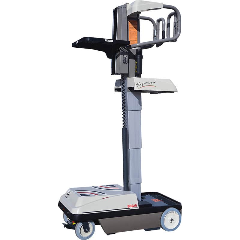 Sprint se déplace rapidement et soulève les opérateurs et les matériaux, en les plaçant à la hauteur souhaitée. Le plateau de chargement supérieur est motorisé à position progressivement variable et a une capacité de 90 kg. En plus, du matériel supplémentaire peut être chargé en bas sur le pont de chargement inférieur, qui a une capacité de 113 kg. Une fois que la charge est positionnée sur le Sprint, l’opérateur n'a pas besoin de démonter, pousser l’équipement ou se déplacer à pied, ce qui réduit considérablement le nombre de déplacements inutiles à l’intérieur de l’entrepôt pour récupérer des articles. Avec une charge complète, le Sprint peut parcourir 28 km!